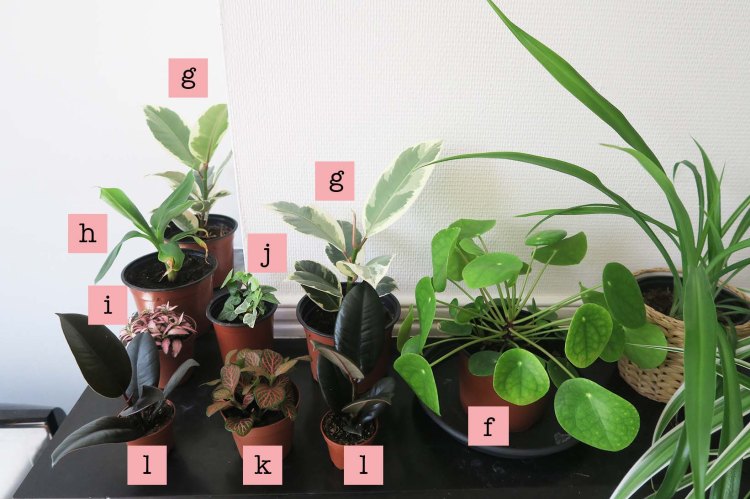 Tanaman (l) juga masih sekeluarga dengan (g), tapi yang satu ini bernama (l) Ficus elastica ‘Abidjan’. Baru aja gue beli minggu lalu hahaha, tepatnya di bulan Juli 2020. Tanaman (i) fittonia pink dan (k) fittonia merah juga gue beli barengan minggu lalu. Di foto ini belum sempet dipindahin ke pot yang lebih besar, tapi waktu tulisan ini dibuat, harusnya beberapa tanaman yang ada di foto ini udah dipindahin ke pot yang lebih besar.