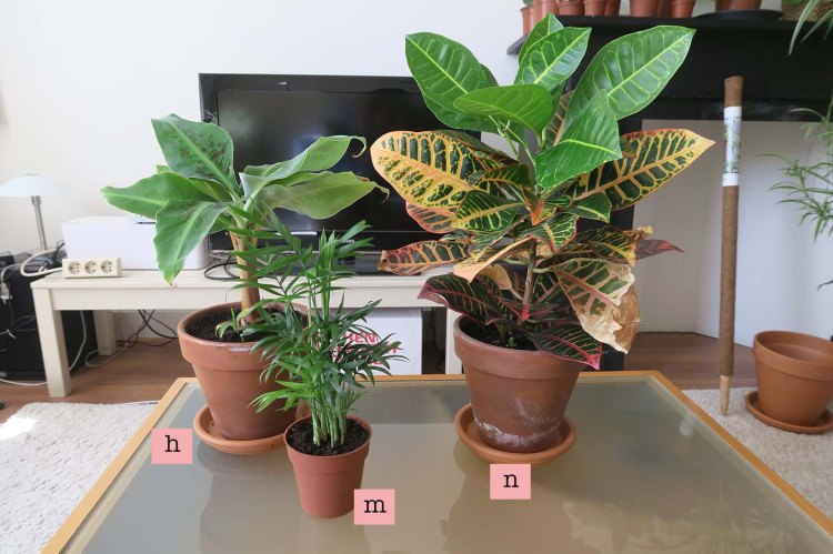 Selain itu, di foto ini juga ada tanaman (m) Goudpalm/Areca palm (Dypsis lutenscens) alias pohon palem yang gue beli barengan sama tanaman-tanaman kecil yang ada di atas perapian (i) (k) (l) di bulan Juli 2020 ini, dan juga satu tanaman yang sering ada di pinggir jalan di Jakarta (paling gak di sekitar rumah orangtua gue :P) yang bernama (n) Croton Codiaeum. Gue beli (n) ini di hari yang sama pas gue beli si pohon pisang, sekitar September 2019. Akhir-akhir ini si (n) lagi tumbuh cepat, kalo kalian lihat daun-daun yang masih hijau di paling atas, itu baru tumbuh sekitar 2 minggu yang lalu dan sekarang udah lebaar XD